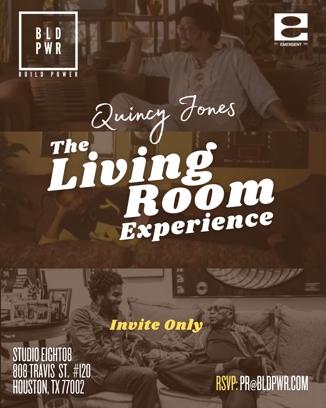 In addition to the screening, BLD PWR and Emergent & Co. are producing an invite-only Living Room Experience earlier in the day at Studio 808 in Houston. Themed around the world of Quincy Jones, whose Bel Air home was a legendary gathering place for the world’s greatest artists, the experience will bring together Houston’s creative community for an intimate conversation about culture, storytelling, and what the city is building.